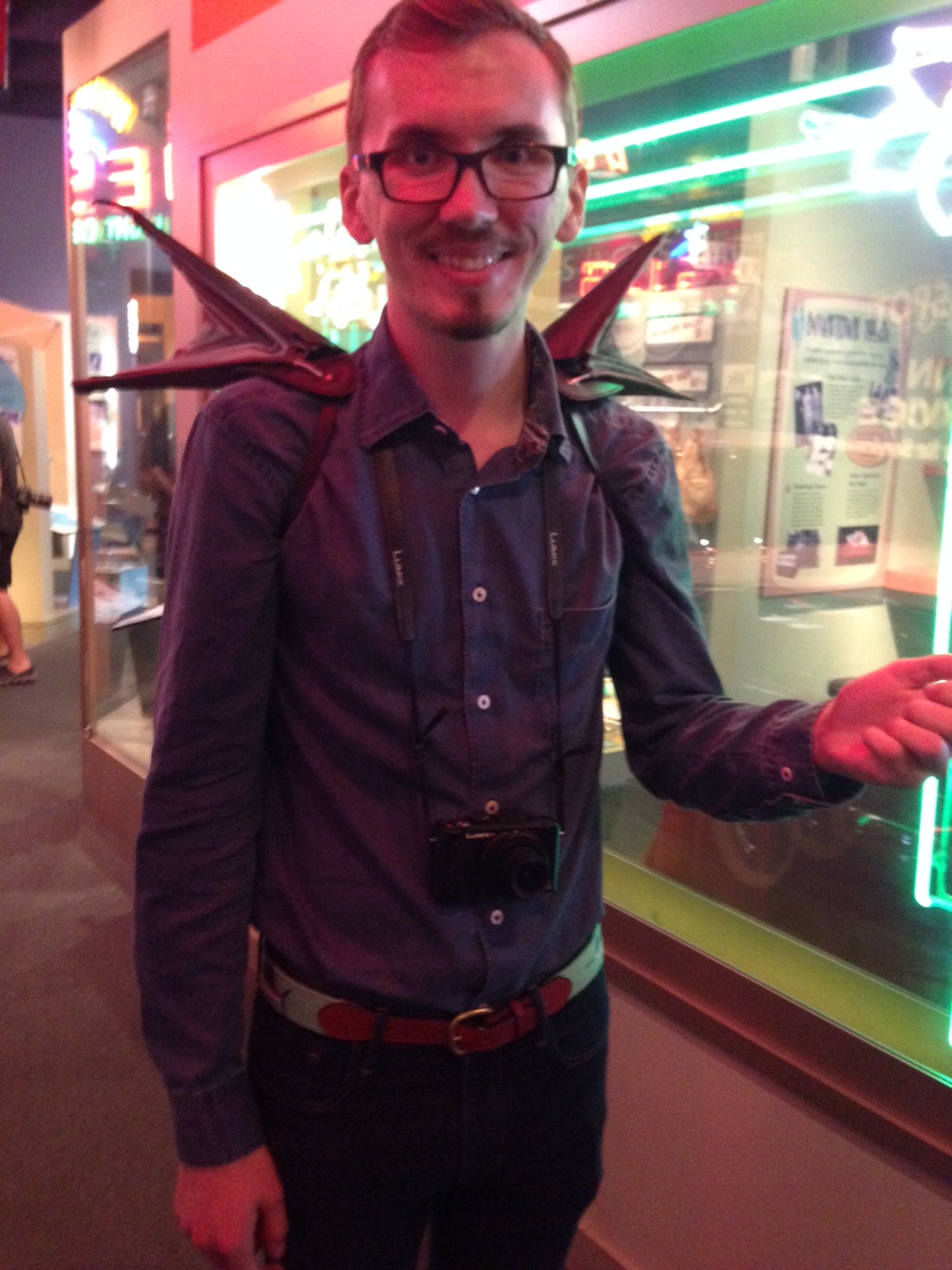Monarch is a harness with wing-like shoulder enhancements that render the wearer more fearsome. The structures expand and contract in response to sensors on the arm reading muscle movement so they mimic a “fight or flight” posturing. It is an example of an expressive wearable that addresses human interactions and public display, not just (like so much wearable tech) online communication and consumption.