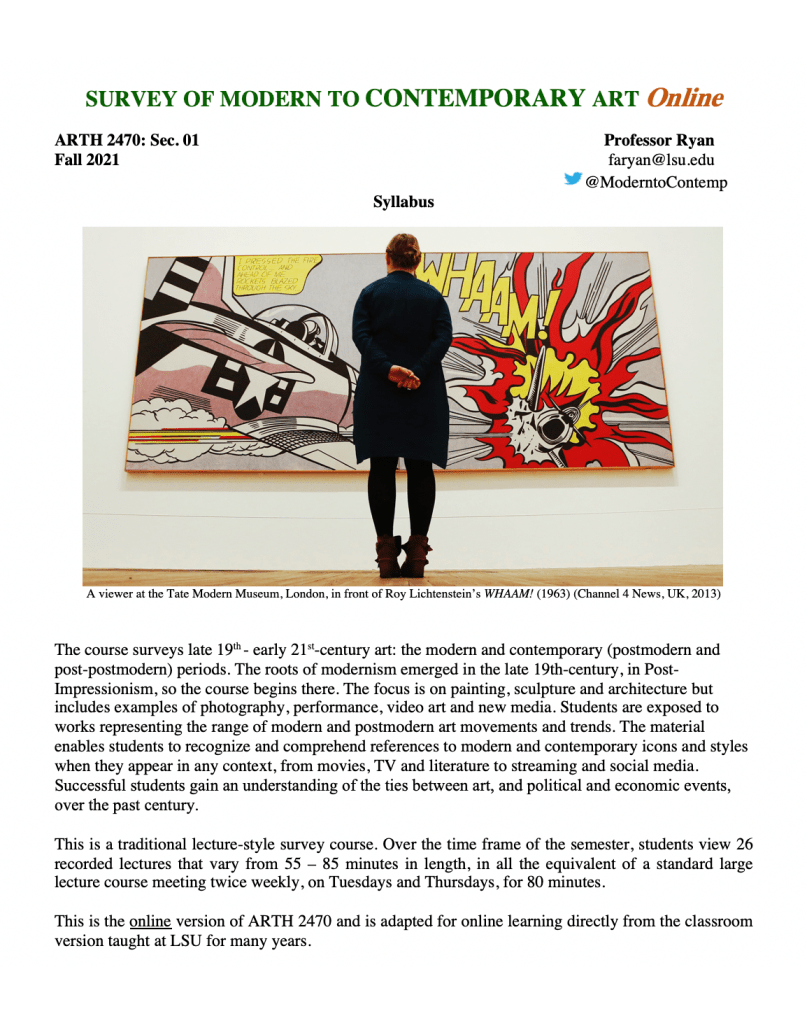 Just finished teaching a new course on art and the environment (an art history/contemporary art course). (See courses page for syllabus).