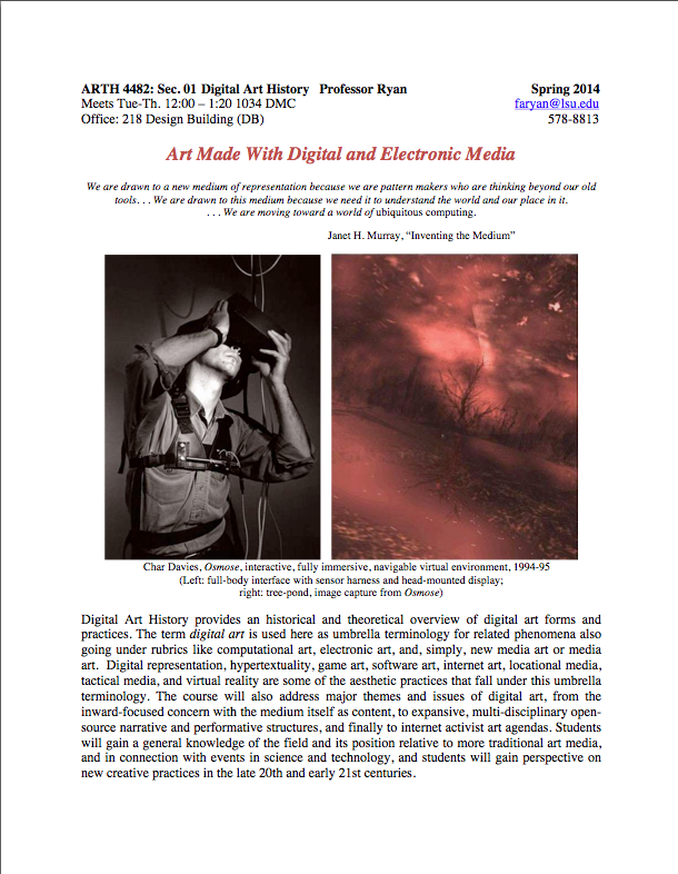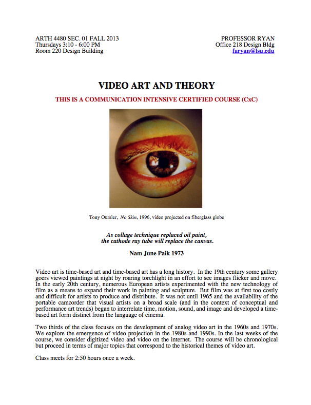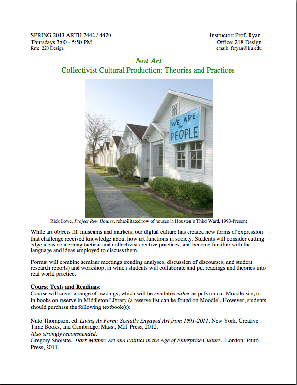 Aesthetics for the Undead: Art and Neoliberalism (Spring 2018)